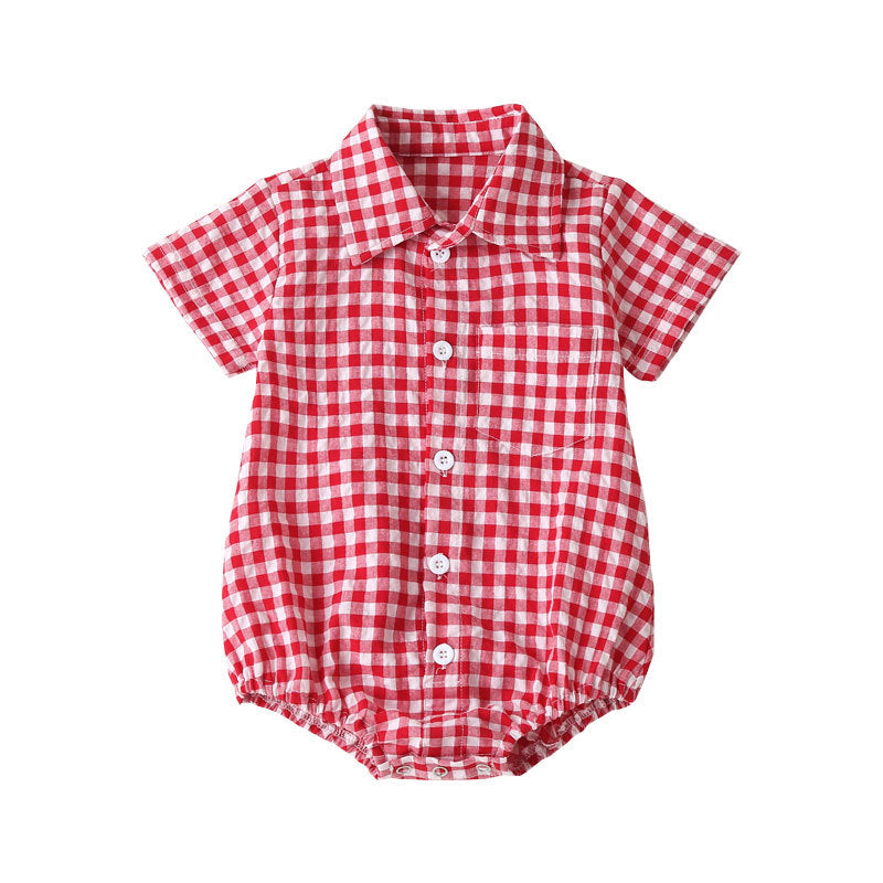 Macacão xadrez de uma peça para recém-nascidos de 0 a 3 anos